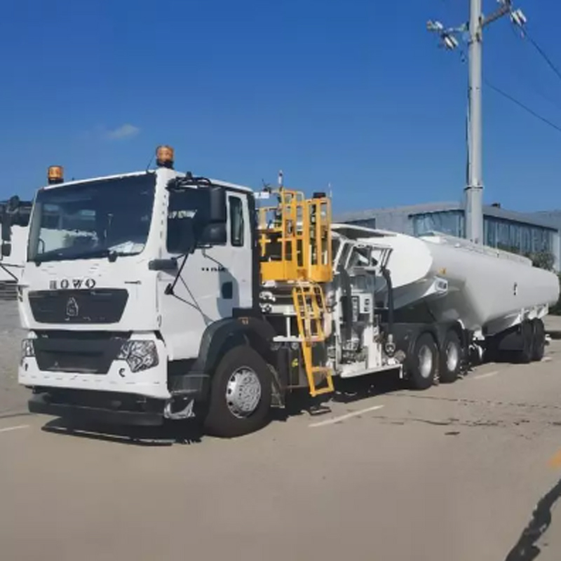 Others: 2 sets of 8kg extinguishers,1 set of static belt,Level gauge,Flow meter。 1、Colors and designs are customized toyour specifications. The tank is square or round, a singlecompartment, made of 5182 aluminumalloy, and a cylinder thickness of5.5mm. The head is 5.7mm thick, and there isan aluminum alloy European standard/manhole with a built-in breather valvein the center of the top of the tank. There are handrails on both sides ofthe top of the tank. Movable aluminum alloy guardrail, equipped with aluminum alloy rearladder (movable and detachable). The control cabinet (aluminum alloy)includes one set of explosion-prooflights inside and one set ofelectrostatic reel outside. (Forrefueling...)Pump: Stainless steel centrifugal pump(mechanical seal type); Flow meter: 0.2grade accuracy, 50mm diameter rotarylobe. Flow rate, filter separator: 5-cartridgefilter (including 2 separator cartridgesand 3 coalescing cartridges). HeavyRefueling method: 15-meter aviationkerosene hose reel with aviationkerosene nozzle; Level gauge: 4-inchaluminum. Alloy dial, operation control: integratedcontrol system. The unloading box on the left side ofthe tank is equipped with an oil andgas recovery system and a 5 km/hemergency cutter head has beenadded in accordance with the newregulations. Emergency shut-off valve system: Anemergency shut-off valve with a redbutton is installed at the rear of thetank. One standard aluminum alloy toolbox, two drain hoses, and two roundaluminum alloy barrels on both sidesof the container. Each container is equipped with a1-inch drain valve at the front end, andall containers are equipped withcontainer locking bars for userconvenience. The tank features a lock, a rubberstopper at the bottom of the outletbox, and 8kg plastic fire extinguishercartridges on both sides of the rear. The tank top surround is equippedwith an aluminum alloy anti-slip meshwalkway, and a rear protective I-beambumper of equal length with aremovable, rear-folding lower section. Safety notices are installed on the left, right, and rear of the tank(500x550mm). All vehicle accessoriesare made of aluminum alloy and bearspecial hazardous materials markings. Two anti-static drag strips areincluded, and the gaps in the rearbeams of the chassis are sealed withaluminum alloy anti-slip corrugatedplates. The tank comes with inspectionand flaw detection reports. Medium:aviation kerosene, aviation gasoline. The paint is the natural color of thealuminum alloy., fully complying with ICAO, JIG and EI international standards. | |